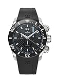 Various chronograph functions and automatic movement make this Edox "Class 1" watch a smart choice for any man. Featuring a blue-tone tachymeter on the inner bezel and a black PVD unidirectional rotating bezel with a minute track. A black textured dial includes luminous hands and indices as well as a big date window at 12 o'clock. The Swiss designed timepiece is completed by a black rubber strap with the "Edox" logo and fastens closed by a deployment-push-button-clasp-with-buckle providing extra comfort. This divers watch has a water resistance depth of 984 feet.